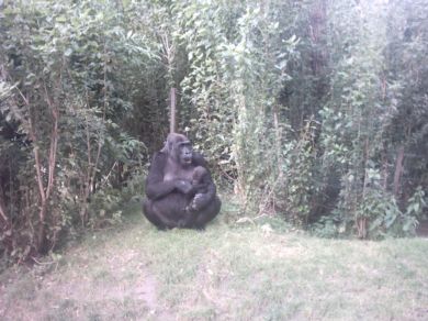 hier zijn de apen lekker aan het smullen .gaat vooral om het kleintje hihihih
