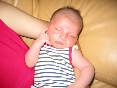 nee hij heeft geen last van de warmte hij is net zo’n onverstoorbare baby als sofie, sofie is nu degene die problemen geeft maar met mijn babies heb ik geen enkel pobleem gehad, ga gewoon mee in hun ritme en dat werkt(voor mij dus he)